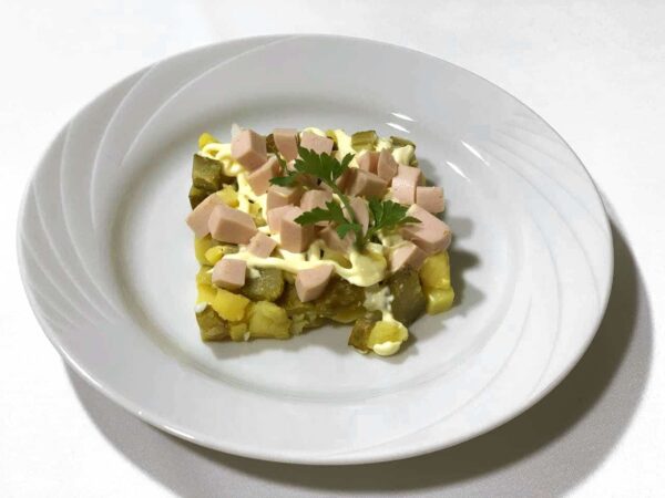 картошка, горошек, колбаса, морковь, яйцо, майонез