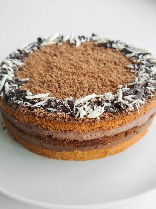 Состав: яйца, сливки натуральные, сахар, шоколад горький, маскарпоне сыр, масло сливочное, мука пшеничная в/с, апельсин, вода, масло растительное, какао, разрыхлитель.